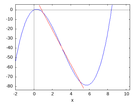 \begin{eqnarray*} f(x) & = & x^3-9\,x^2+5\,x \\ g(x) & = & 15-18\,x \end{eqnarray*}
