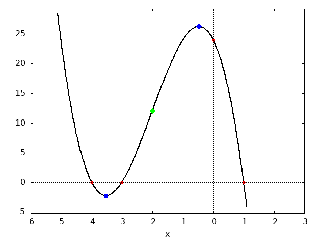 Gegeben sei die Funktion $f(x) = -2\,x^3-12\,x^2-10\,x+24 $