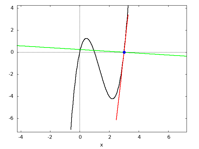 Ermitteln Sie die Gleichungen der Tangente und der Normalen bei $x = 3 \,$.