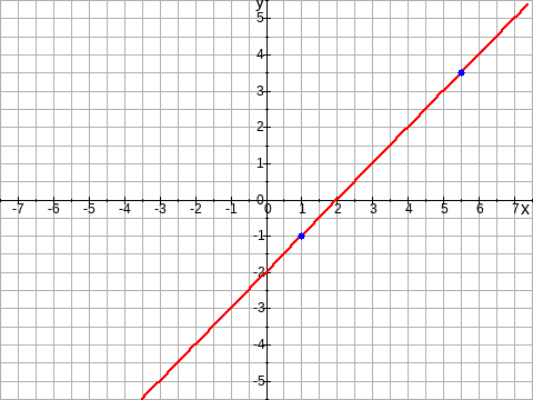 Gegeben seien die Punkte $P_1(\, 5{,}5 \mid 3{,}5 \,)$ und $P_2(\, 1 \mid -1 \,)$.